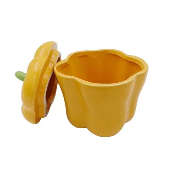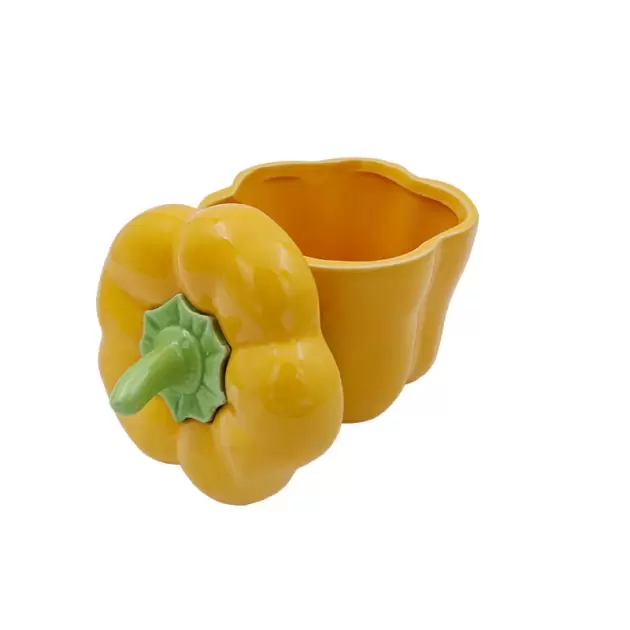 Pote em forma de pimento, com tampa. Disponíveis na versão pimento vermelho ou pimento amarelo.
